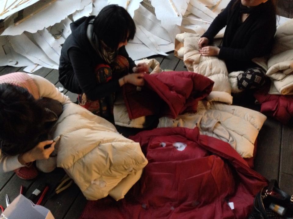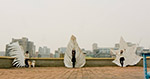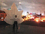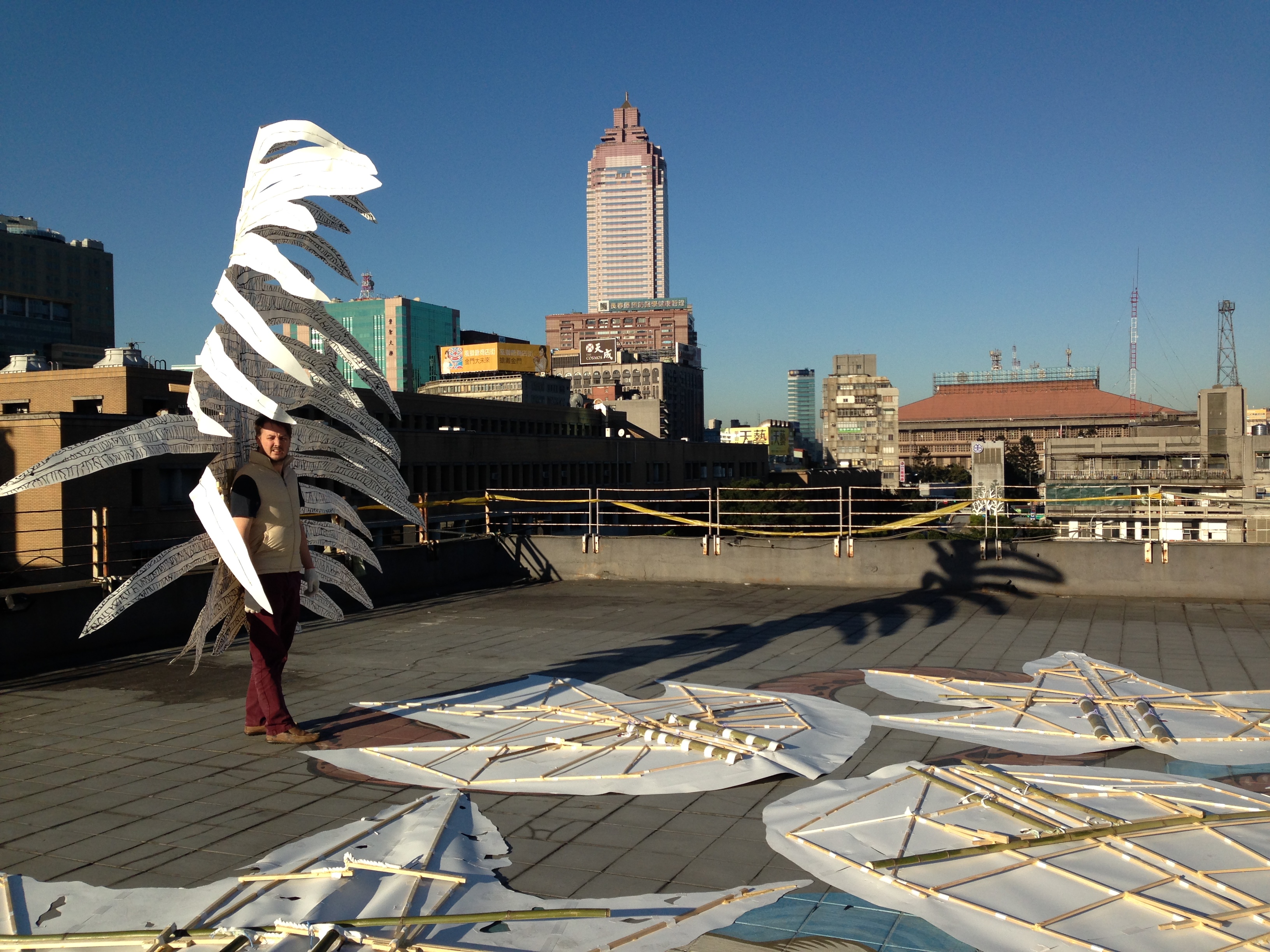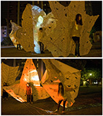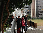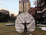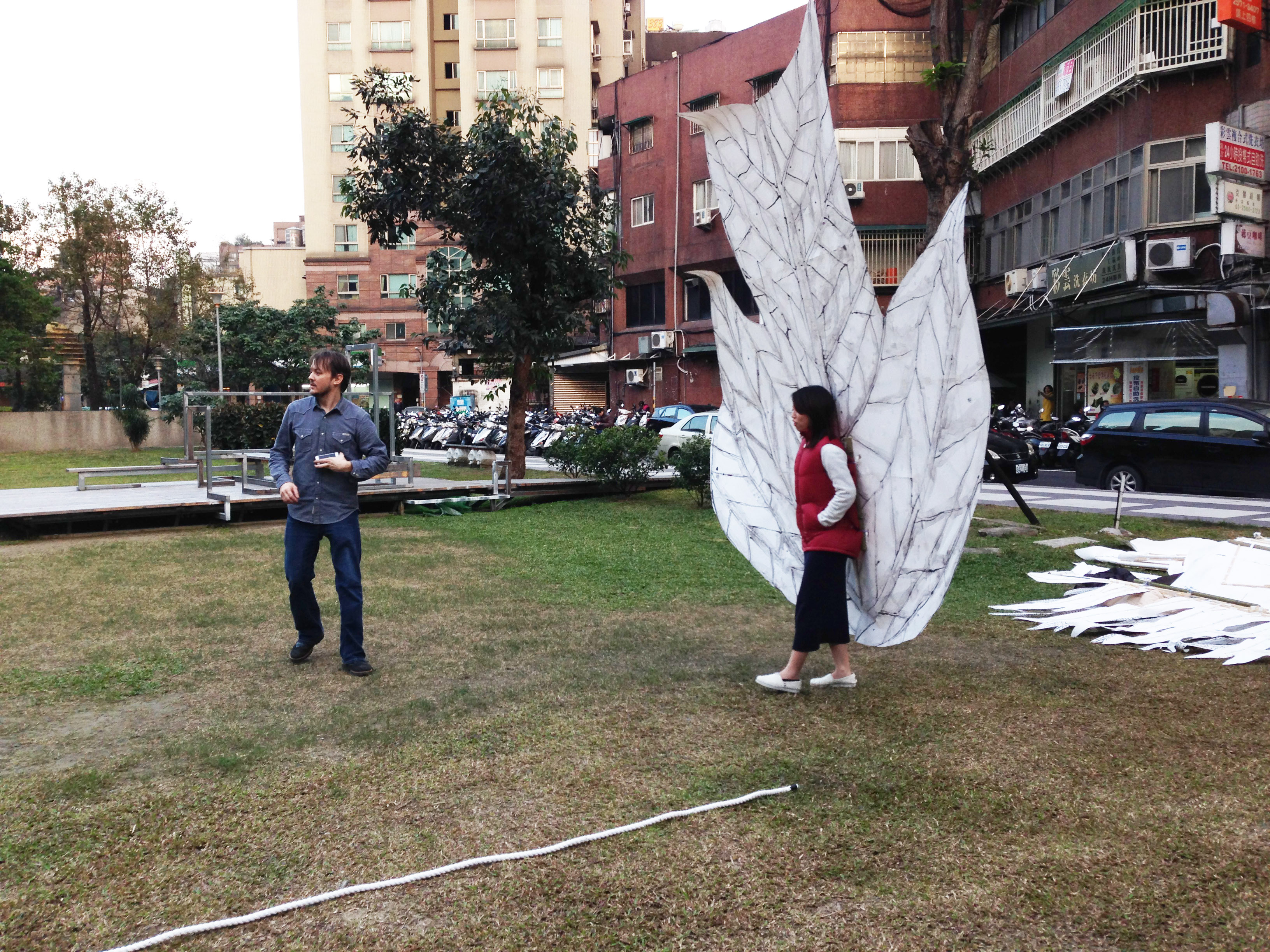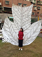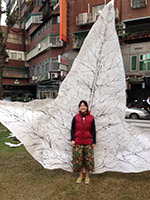 I created large scale leaf-sculptures based on selections from endangered plants and trees from Taiwan. The skeletons of the sculptures were made from bamboo, and the skin from recyclable paper. 17 leaves in all, each featured an attached vest, allowing the piece to be comfortably worn on the back, and allowed mobility. The project involved many volunteers, local art students, and the Taipei arts community. |