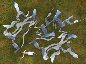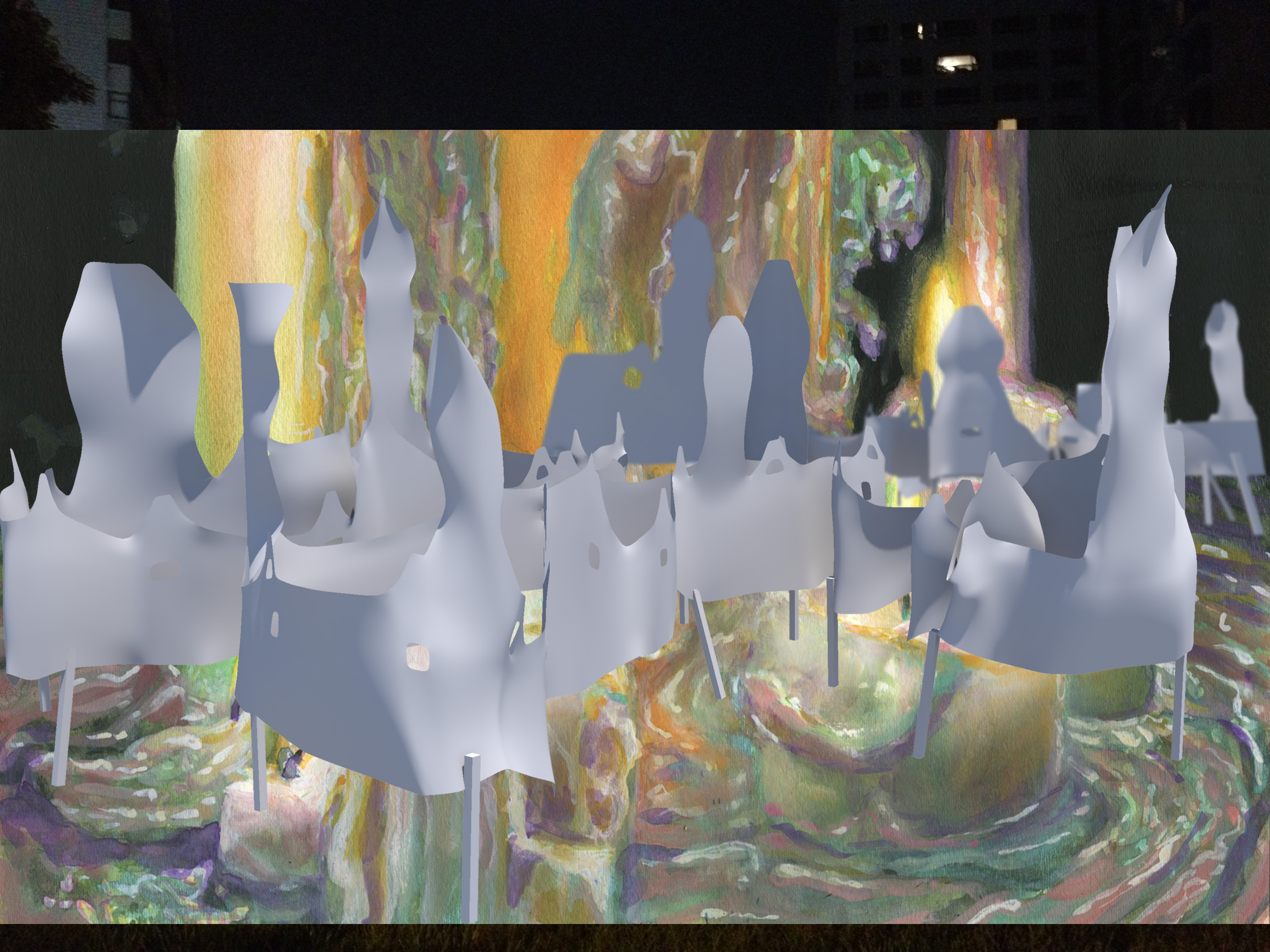 | (left) ariel view with human-size comparison, (right) painted image to be projected on sculpture. | ||||||||||