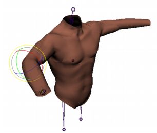 Rigid skinning provides articulated deformation effects by enabling joints to influence sets of deformable object points. The points of rigid-bound skin have a weight either 100% joint-membership, or 0%. (they can be thought of as binary appointments to joints). Because of this simplicty, Rigid-binding in cheap to calculate, but can leave tear between two opposing rotating joints, such as in arms or knees.