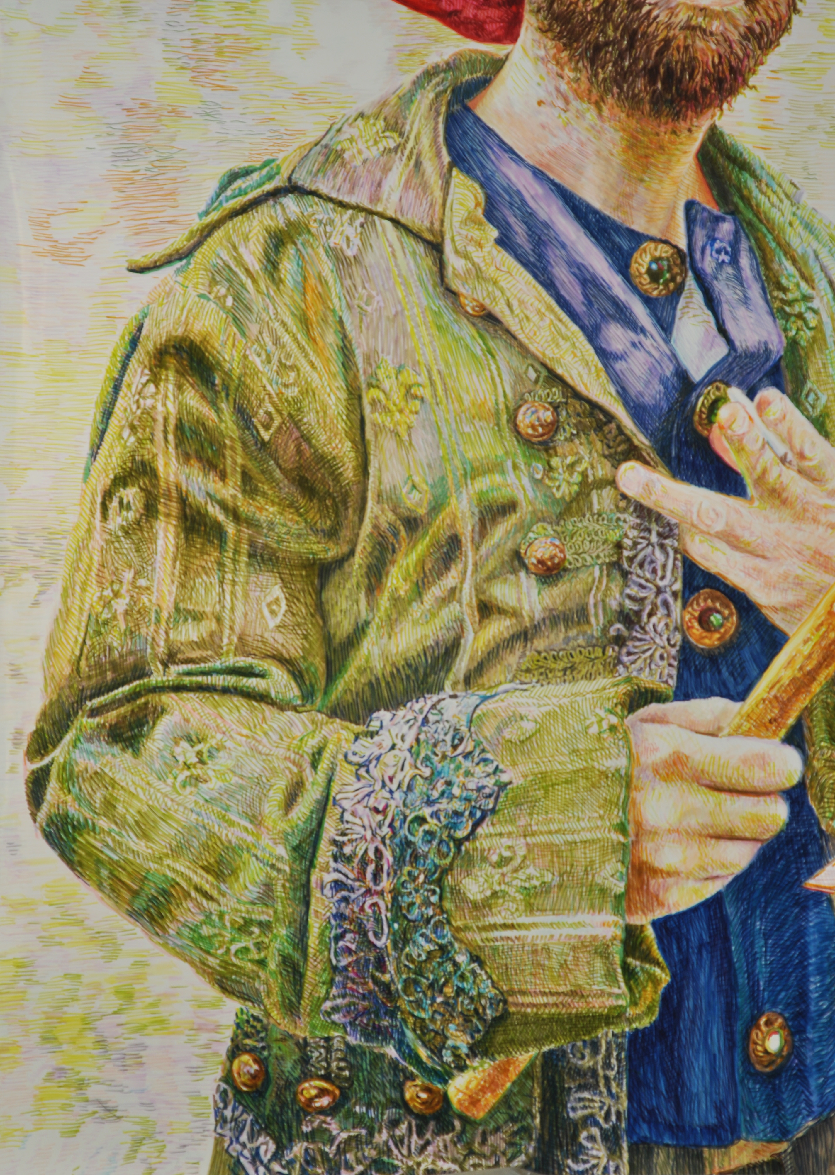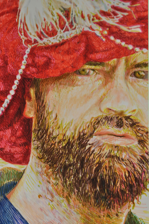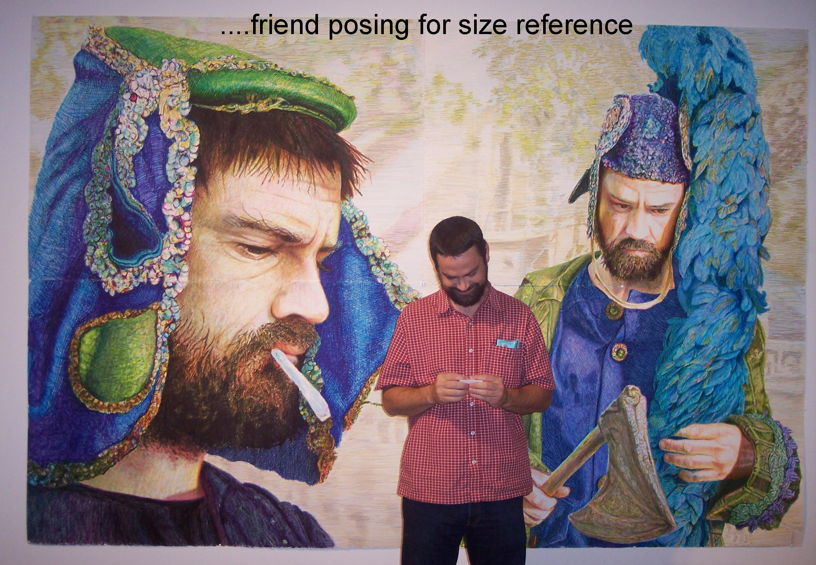 | "Darrin, with the Two Hats", 4 panels totalling 80"x120" , 2006, acid free tombo, on arches wc paper, currently unframed | |||||||||||