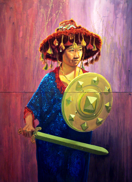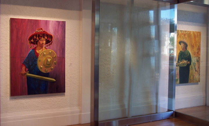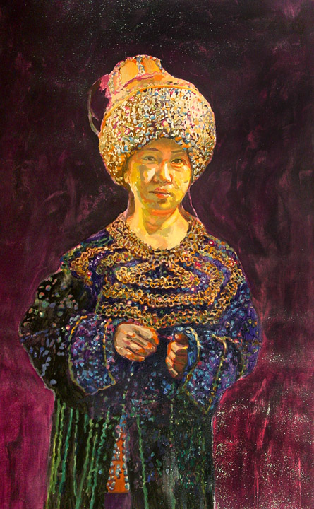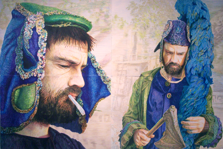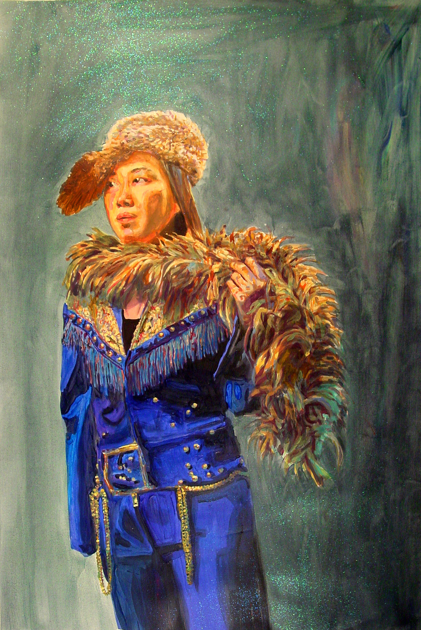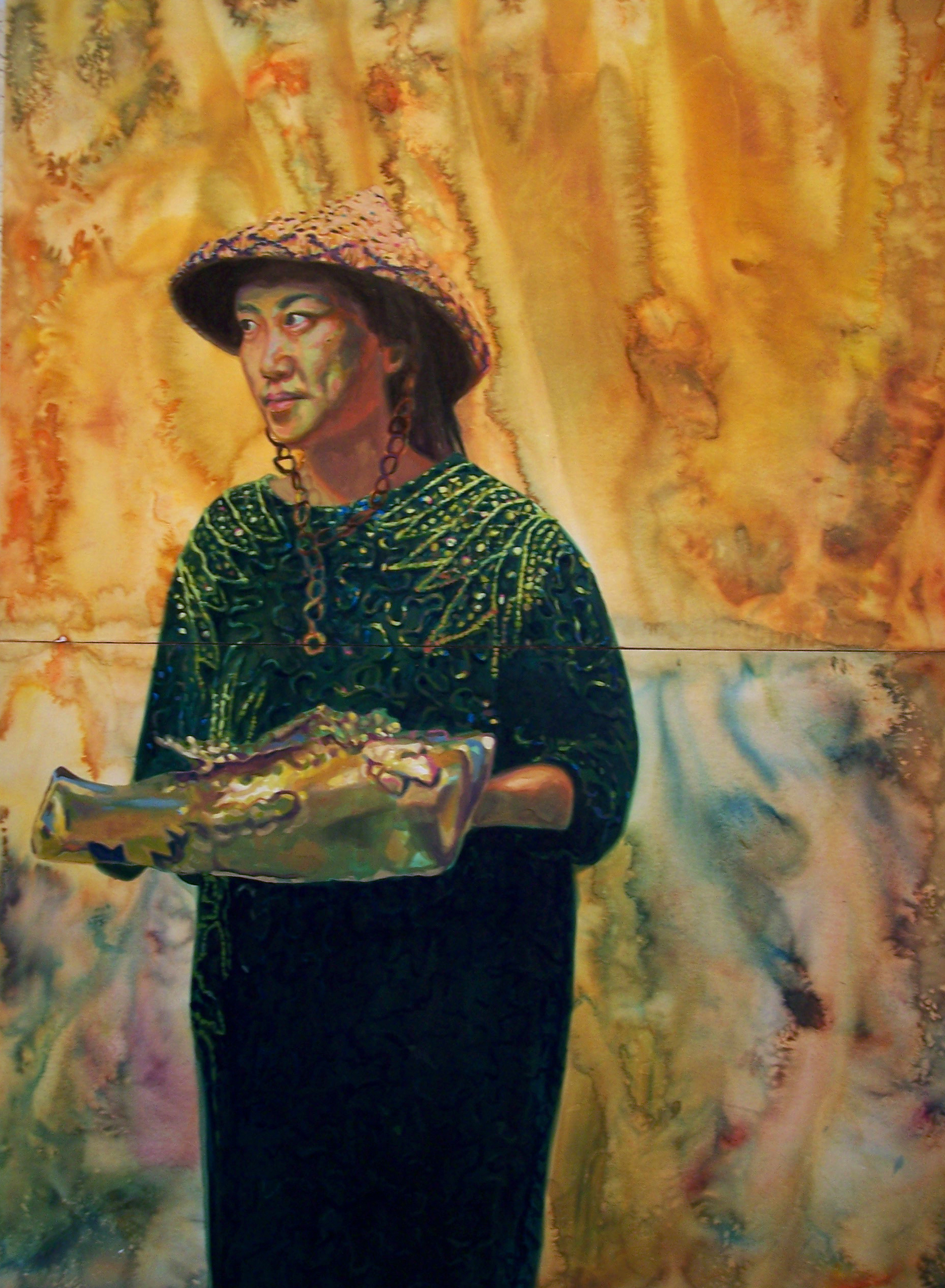 | "Nicole Basket Head" acrylic on paper, 38"x30"2008, cntly. unframed | "Nicole Blue Dress", 40"x60" (2 panels) acrylic paper mounted on plywood stretcher, 2008 | ||||||||||