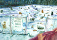 by capturing features and recording poignant imagery with the use of watercolor
